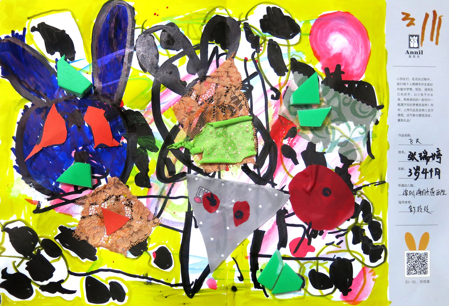 张瑞婷 3岁 飞天 指导老师:彭玲玲