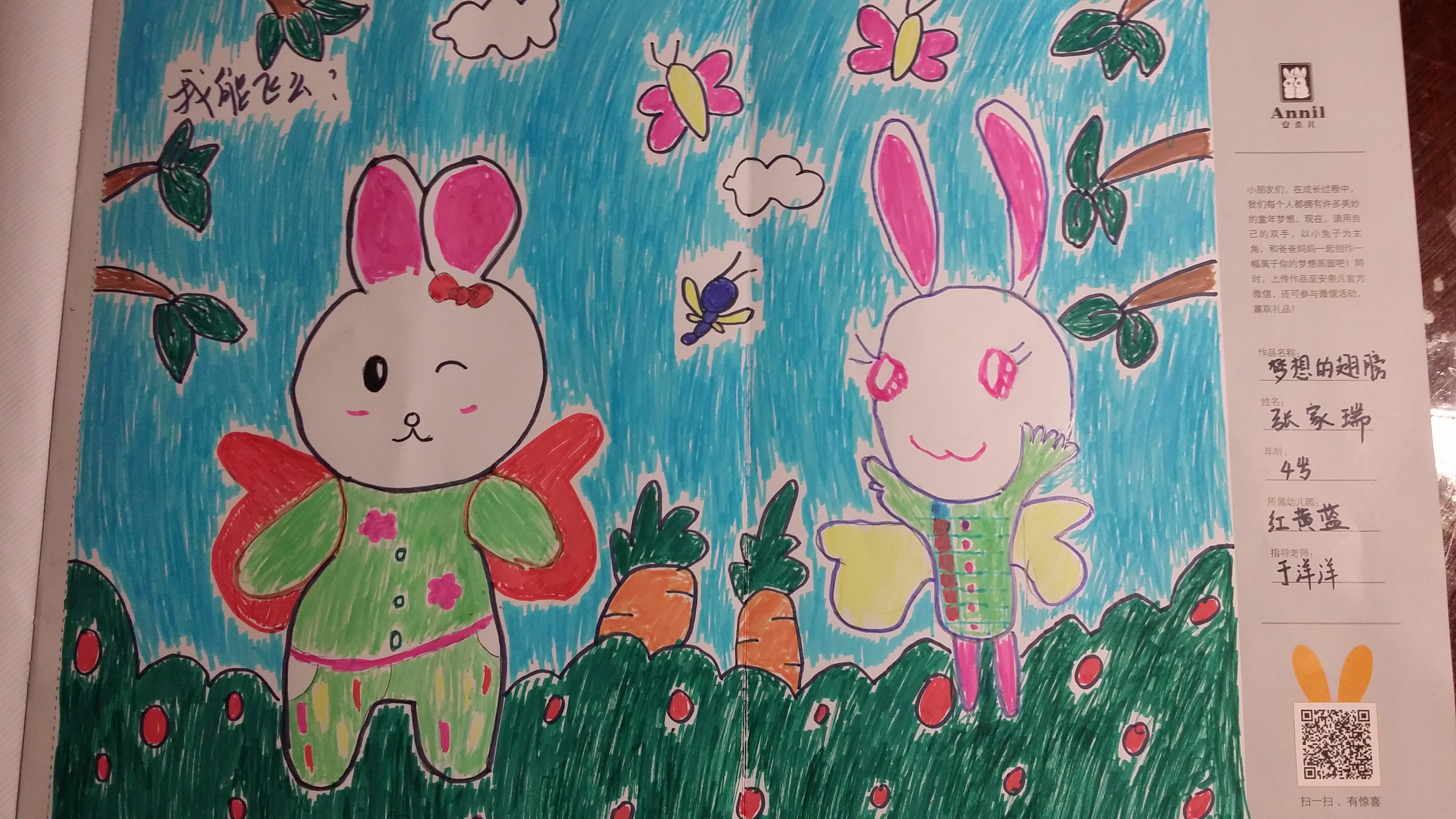 两个兔兔朋友乘着梦想的翅膀,在美丽的自然中飞翔