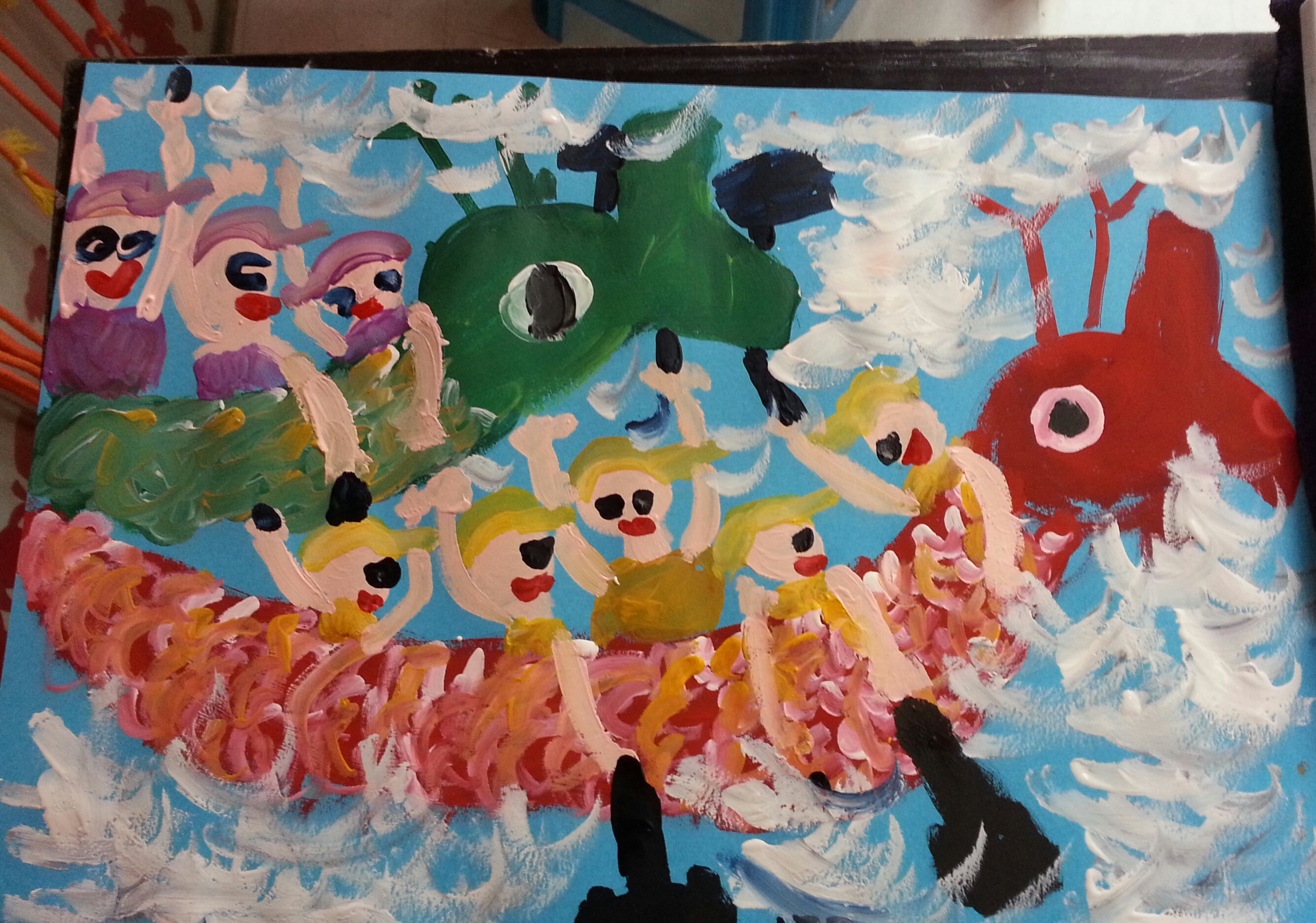 我们班男同学和女同学比赛划龙舟赛。