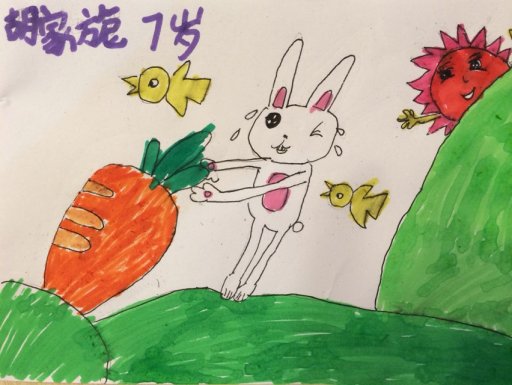 - 作品描述:小白兔安安在草地上发现了一个超级大萝卜,她使劲地拔呀、拔呀、拔呀…… 终于拔出了大萝卜。安安高兴极了,赶紧把大萝卜抱回家,和爸爸妈妈美餐一顿。