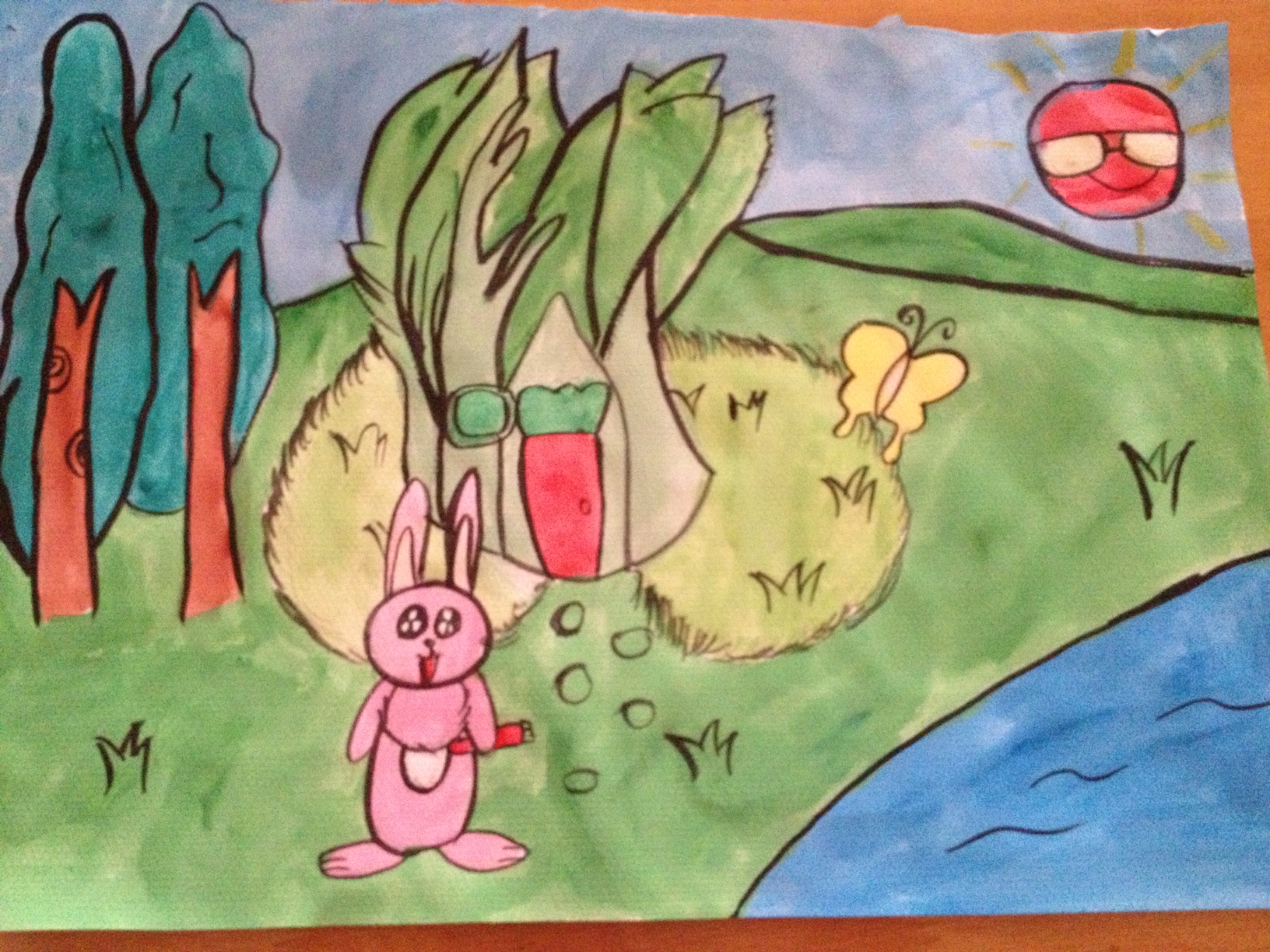 现在兔子们的家园都逐日被破坏,我话这幅画的理由就是想让世界上所有的兔子都能像华丽的一样拥有幸福美妙的家园!