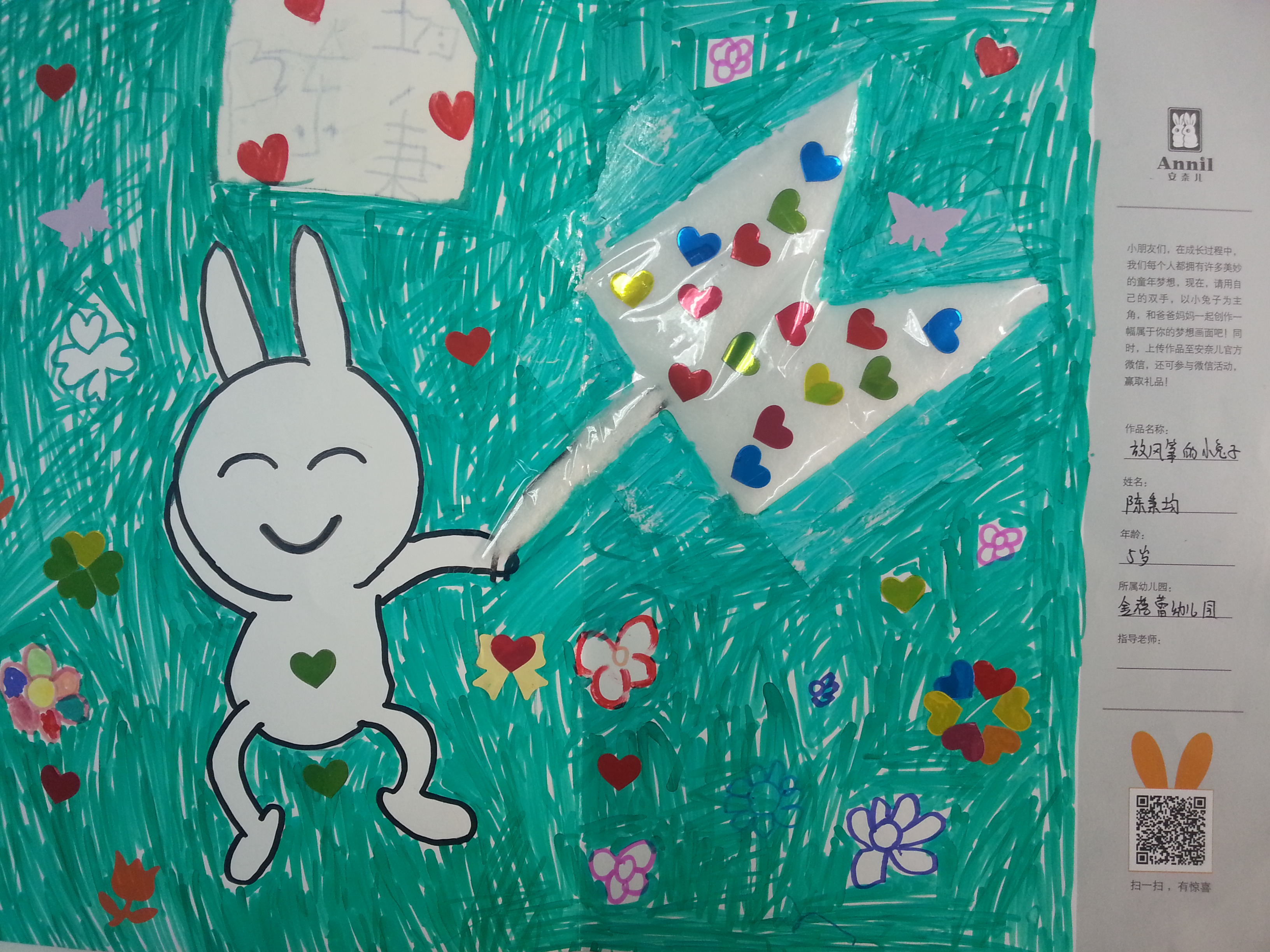 小兔子放飞了一个美丽的风筝