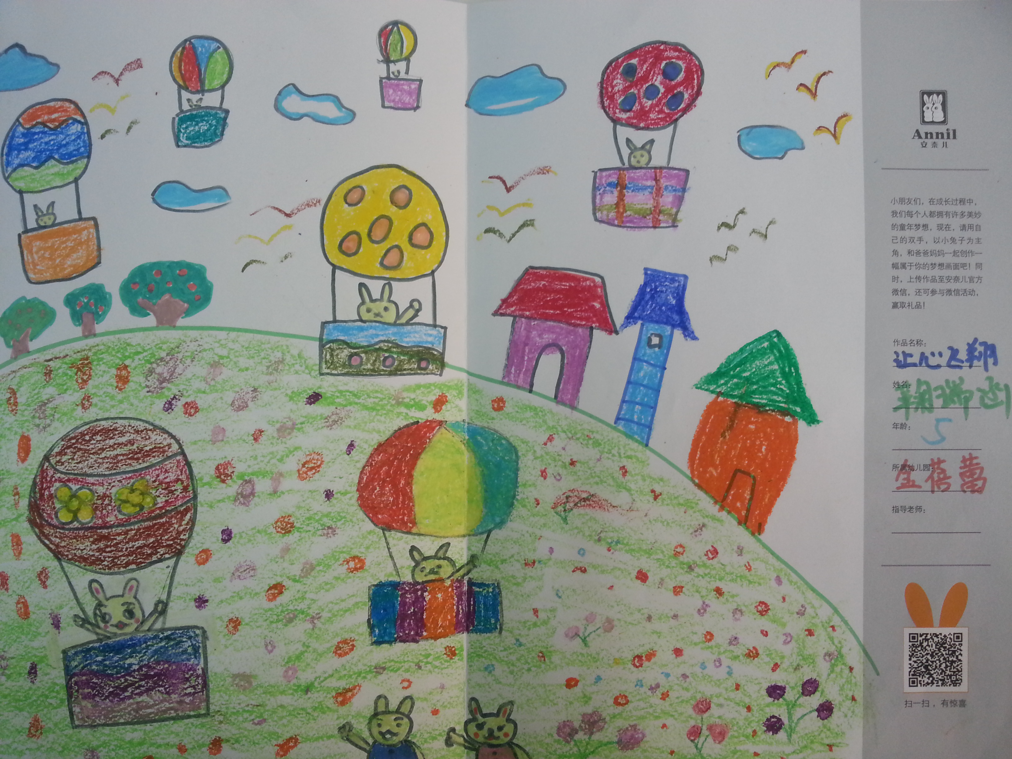 兔兔乘着热气球自由飞翔