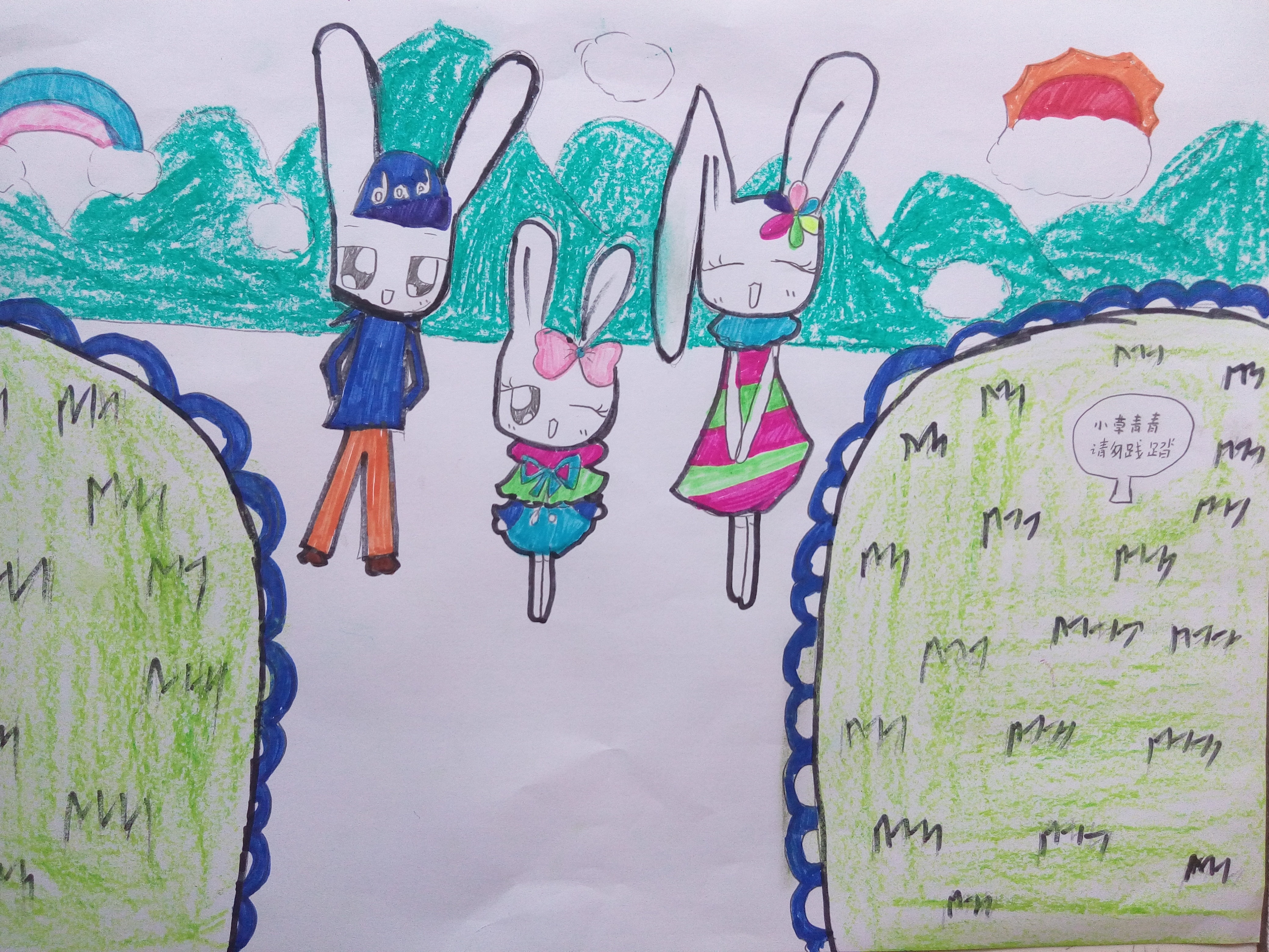 这个作品主题:喻意美好的生活,从健康、快乐开始,希望所有人都能幸福快乐!作品是兔兔一家的出游,有爸爸、妈妈相伴的旅行才会快乐。