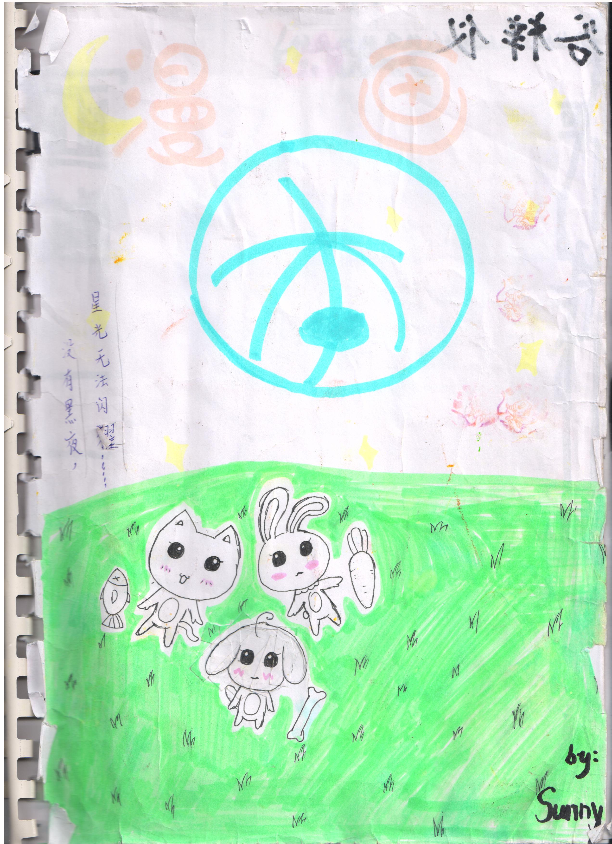 小兔、小猫、小狗各自带着自己最喜欢的食物躺在草地上望着星空......